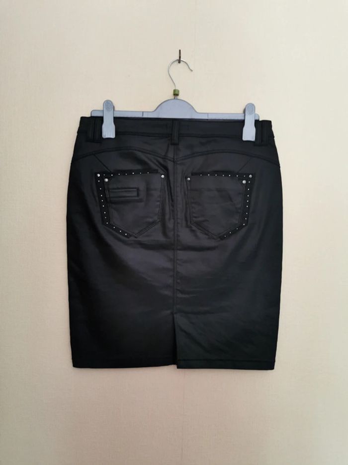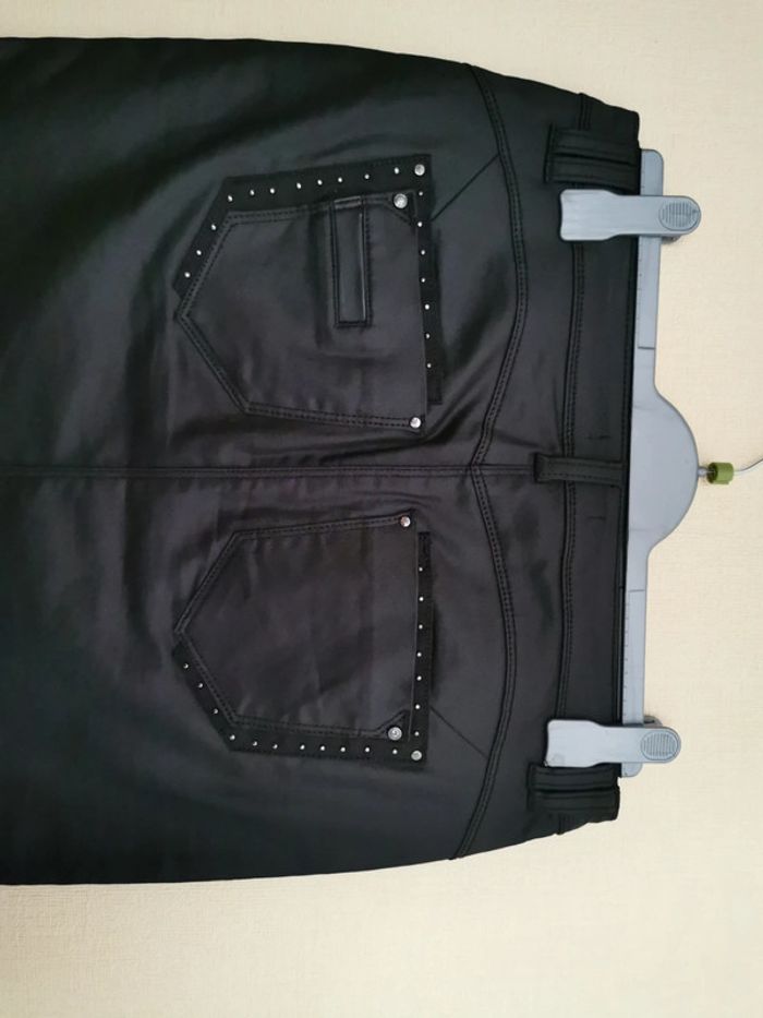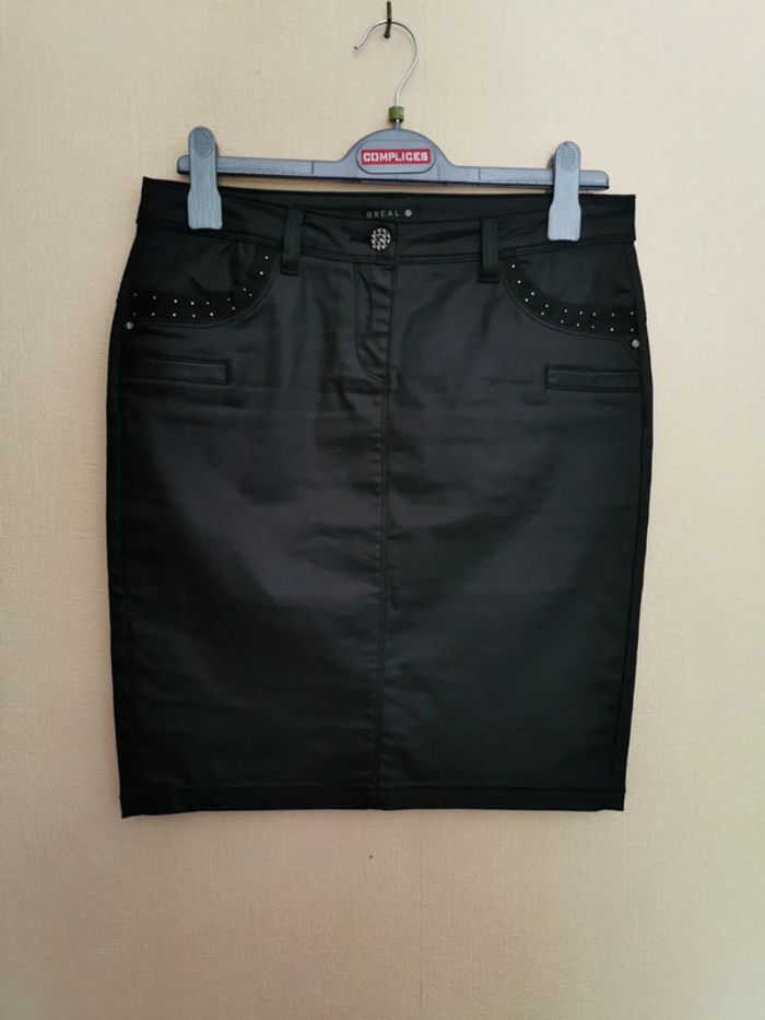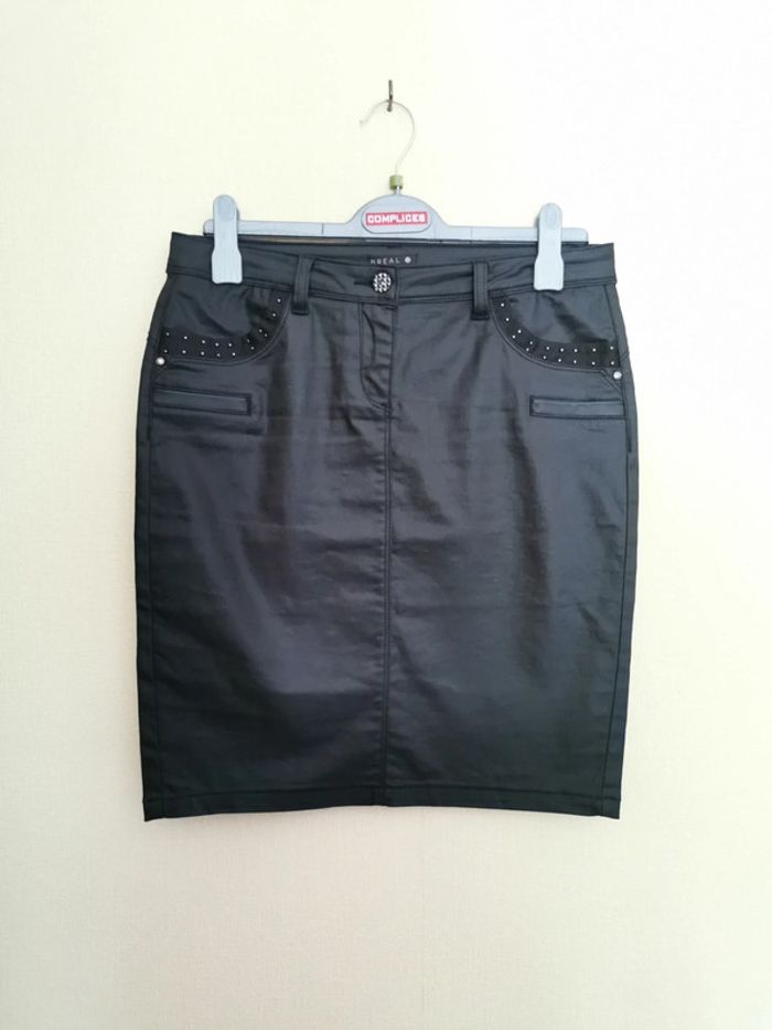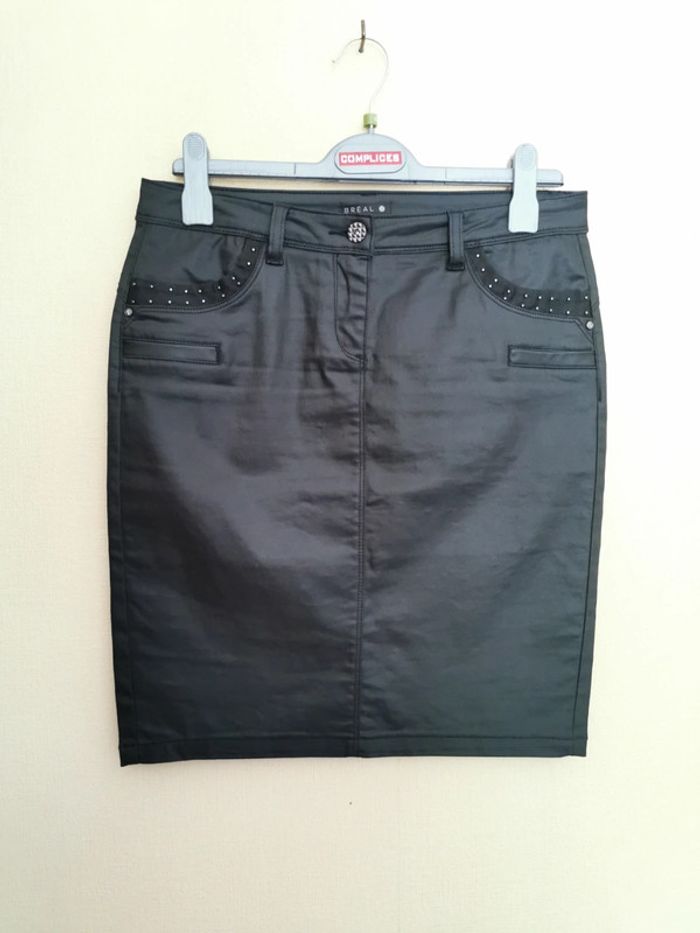 Parfait état, Magnifique jupe, 2 poches avant, 2 poches arrière Effet enduit stretch Sylée avec clous et bandes simili cuir Taille 40 Marque Bréal Achetée plus de 40€ Remise en main propre possible sur montargis #Lauradamienfemme40