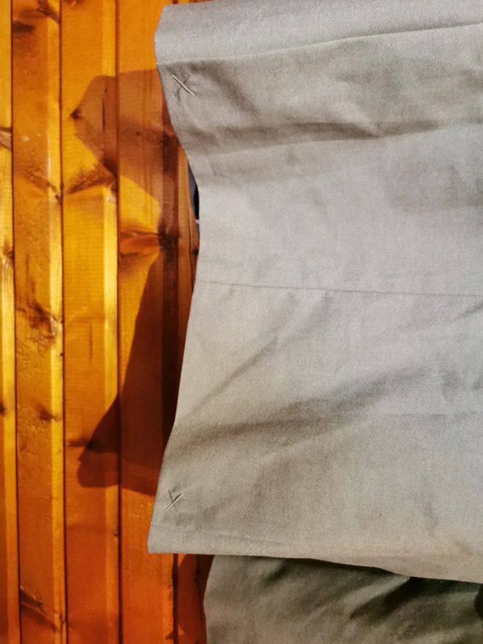 Très bon état Défaut au niveau des manches : voir photos Couleur gris clair (comme le pantalon kiabi dans mon dressing) Taille 48 sur l'étiquette mais taille petit Remise en main propre possible sur montargis #LauradamienhommeXL