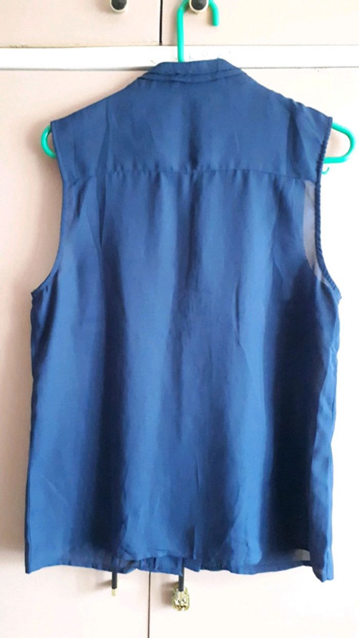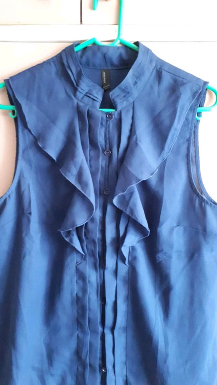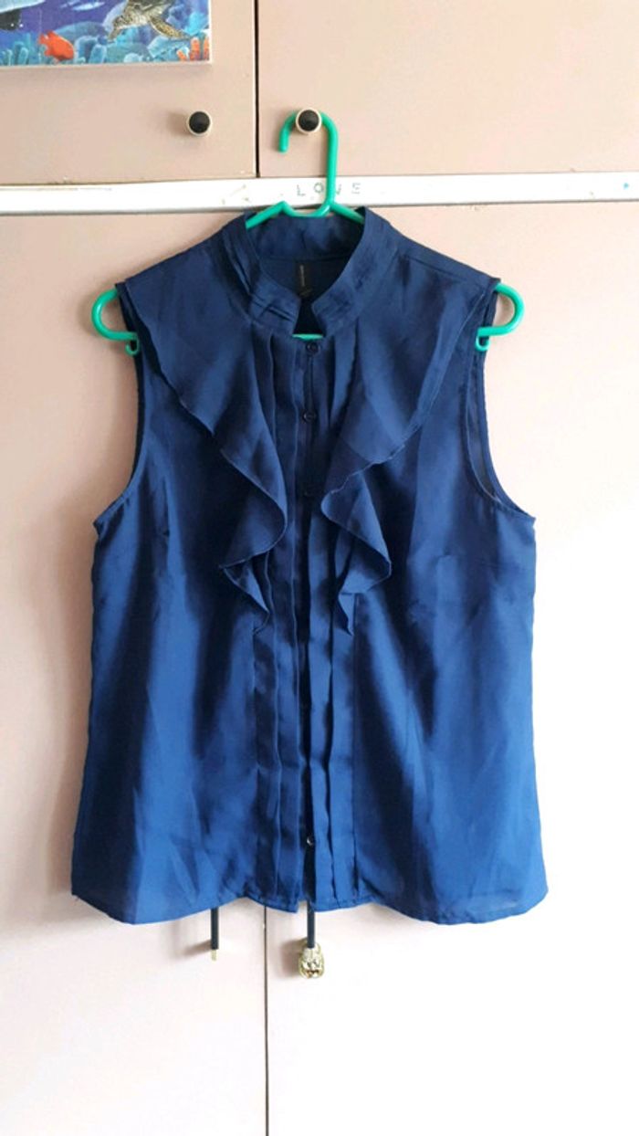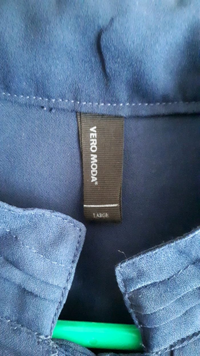 Très bon état Superbe chemisier avec volants / froufrous Fait habillé, chic, classe Légèrement transparent (voir photo) Couleur marine Taille L Marque Vero Moda Remise en main propre possible sur montargis et sens #Lauradamienfemme40