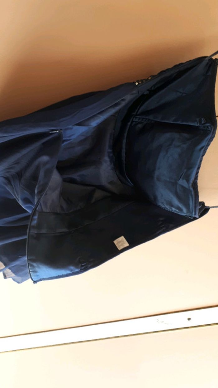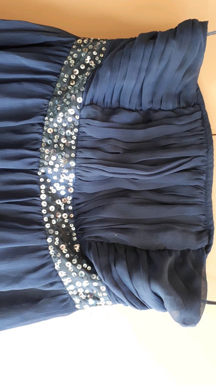 Très bon état, très peu porté Bustier bleu marine avec sequins brillants Possibilité de mettre des bretelles Grande fermeture éclair pour enfiler plus facilement Effet drappé sur la poitrine, voilage en bas avec doublure Remise en main propre possible sur montargis ou sens #Lauradamienfemme40