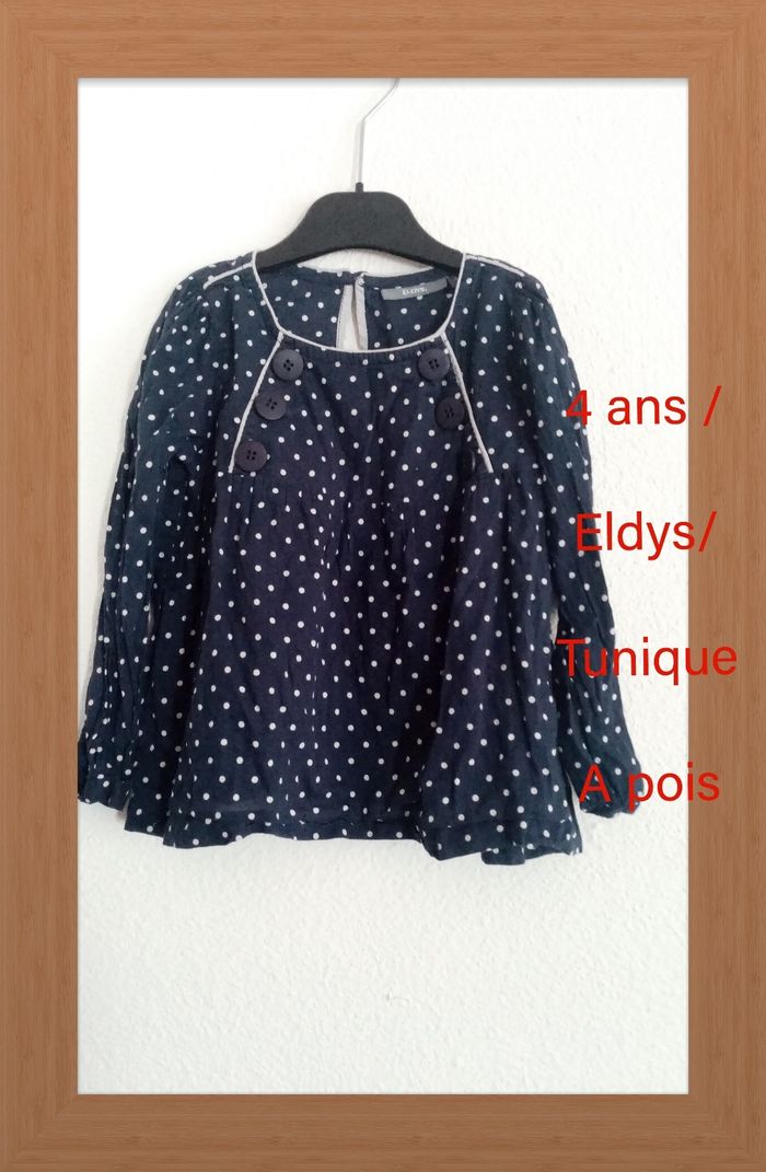 4 ans /  Eldys /Tunique, blouse, bleu marine a pois blanc, boutonnés /excellent état - photo numéro 2