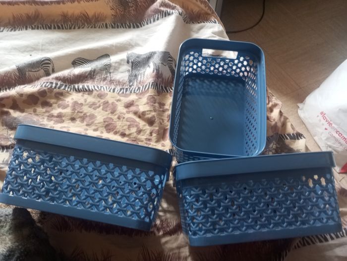 3 petits bacs de rangement couleur bleu