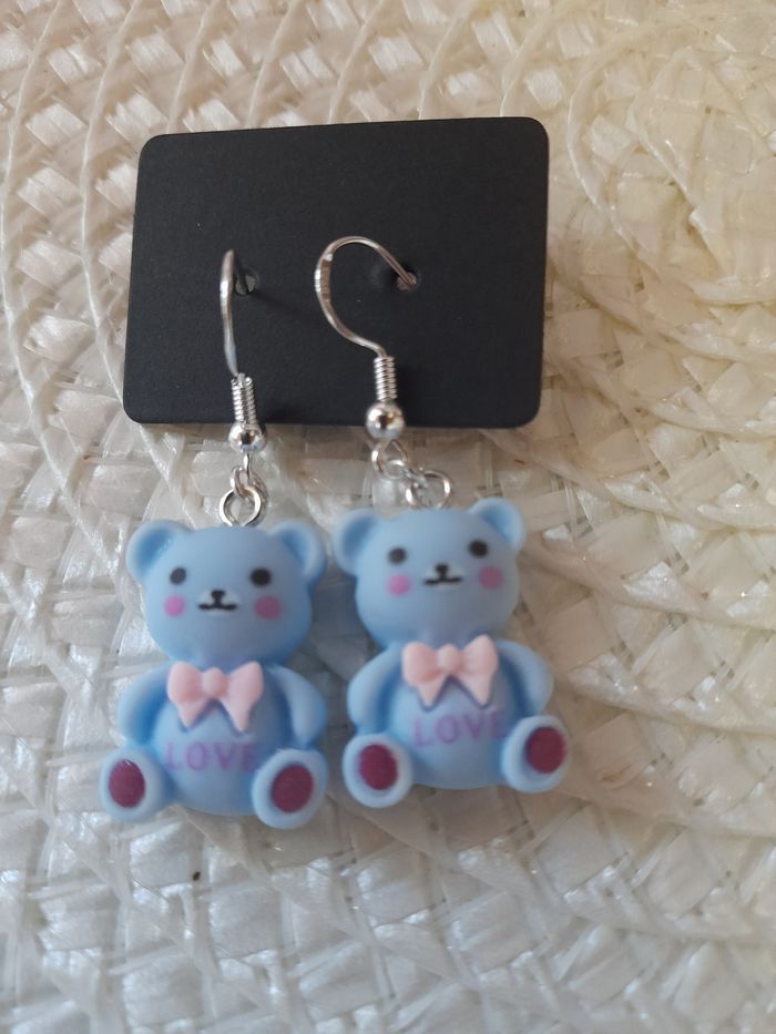 Paire de boucle d oreille bleu ourson love - photo numéro 2