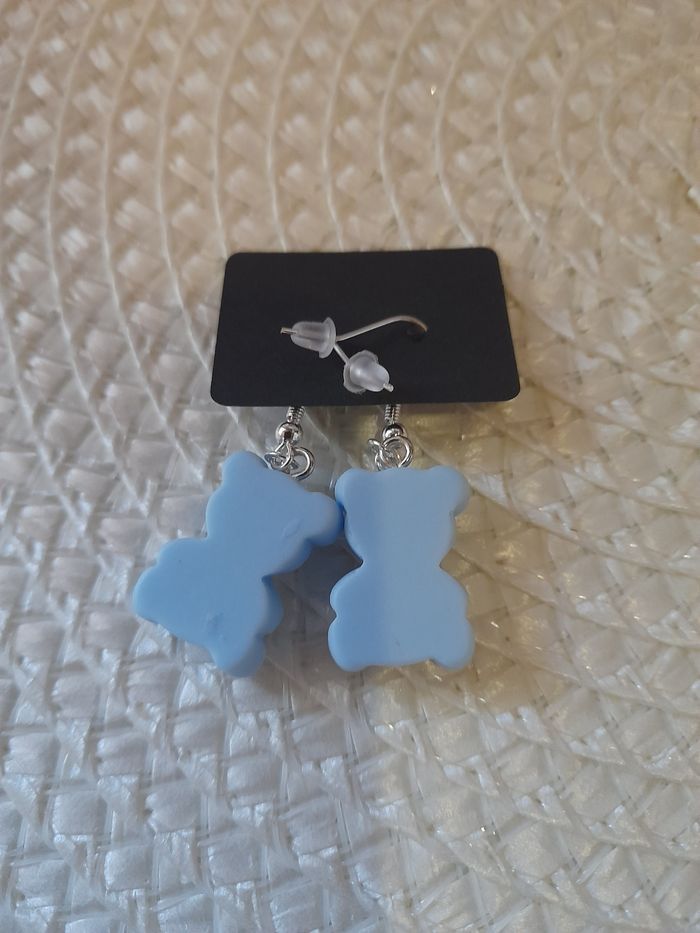 Paire de boucle d oreille bleu ourson love - photo numéro 3