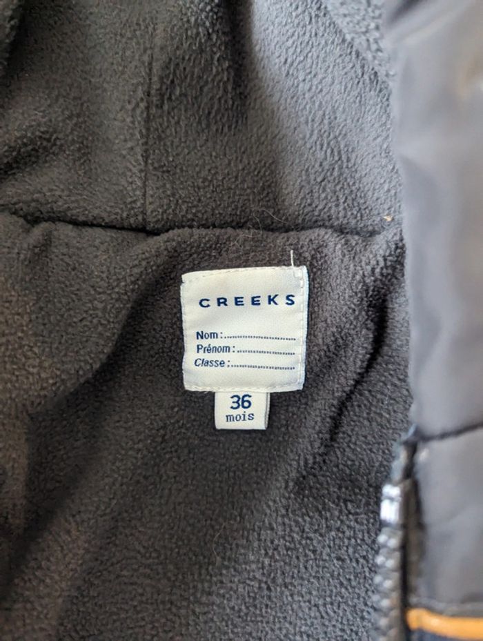 Doudoune sans manche creeks 3 ans bon état . Un point de la fermeture éclair a lâcher mais n empêche pas la fermeture et l ouverture de la veste . Bon état