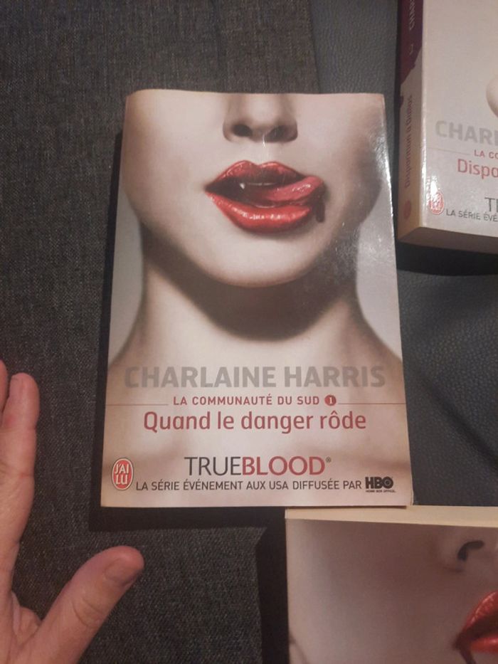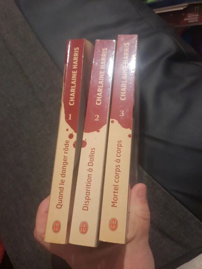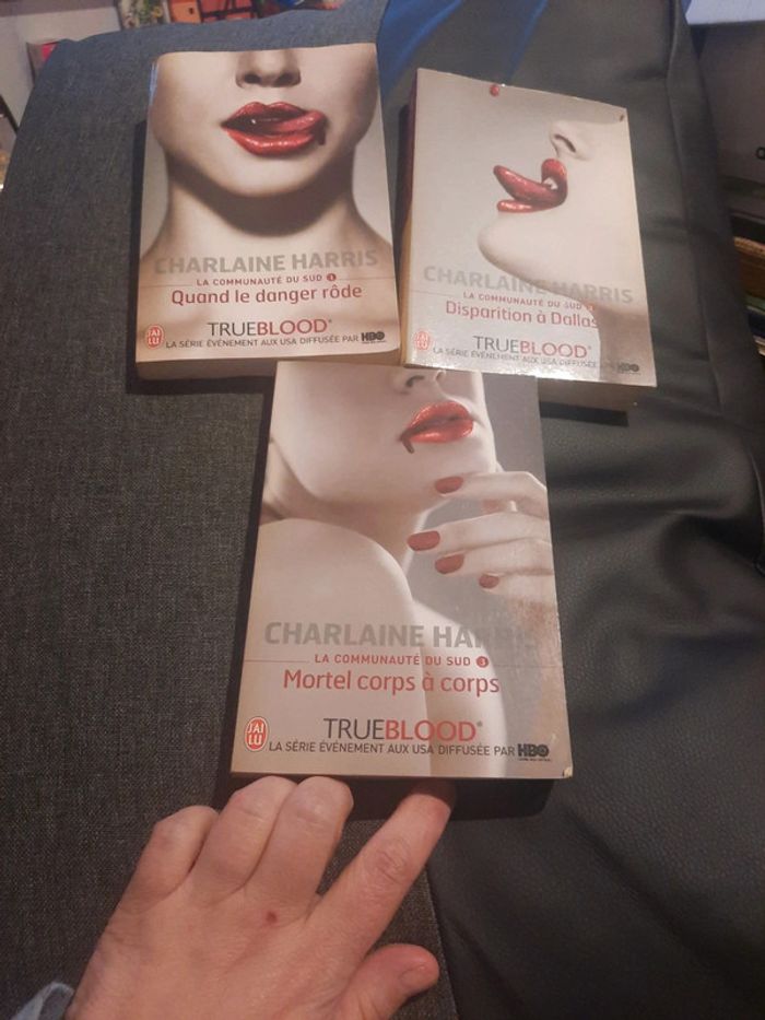 Livre trueblood Charlaine Harris n°1.2.3 Le numéro 1 à pris un peu l'humidité mais ne gêne vraiment pas pour lire. #livrejennycdu76 #trueblood #charlaineharris