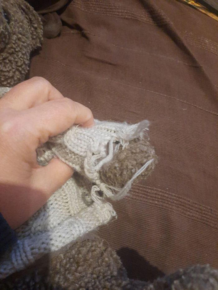 Vieux sac nounours un bout de la manche à reprendre. #peluchejennycdu76