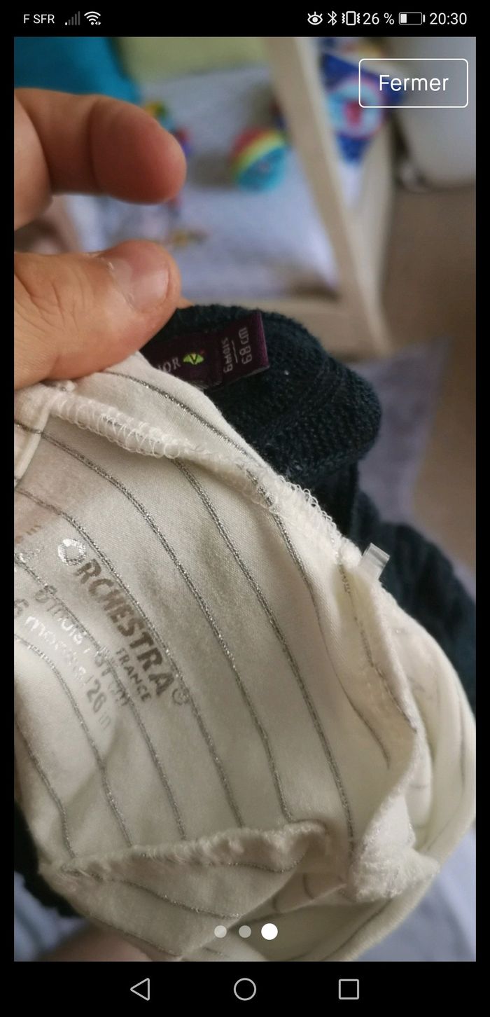 Je vend un lot / ensemble - Un haut à manches longues ORCHESTRA à rayures blanc et gris - Un gilet / boléro vert bouteille SERGENT MAJOR Taille 6 mois Neuf jamais portés, juste lavé une fois Remise en main propre sur Marseille possible. Me contacter pour les envois... N'hésitez pas à regarder mes autres ventes, envoi groupé.