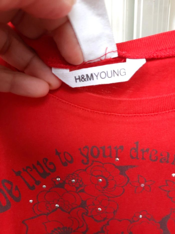 T shirt rouge H&M 134/140 cm #vetementfille10ansjennycdu76 #hm
