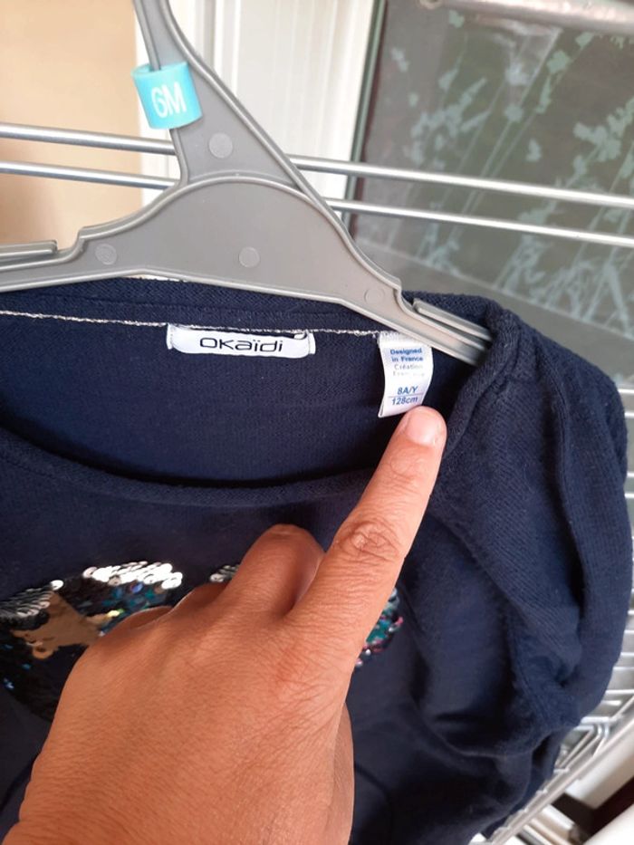 Pull bleu marine à sequins magiques de chez okaïdi 8 ans #vetementfille8ansjennycdu76 #okaidi