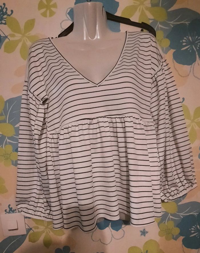 Haut ml blanc rayé de chez boohoo taille 34 #vetementfemmejennycdu76 #boohoo