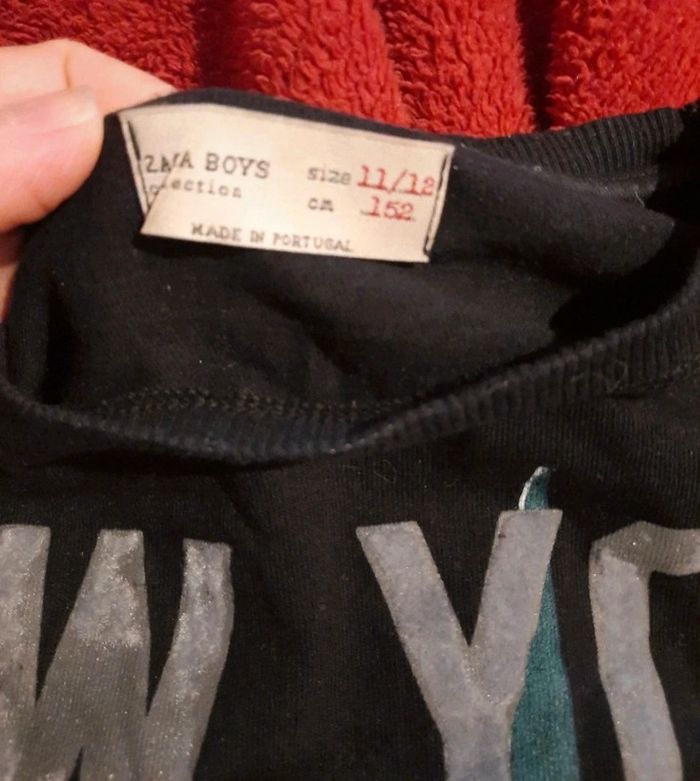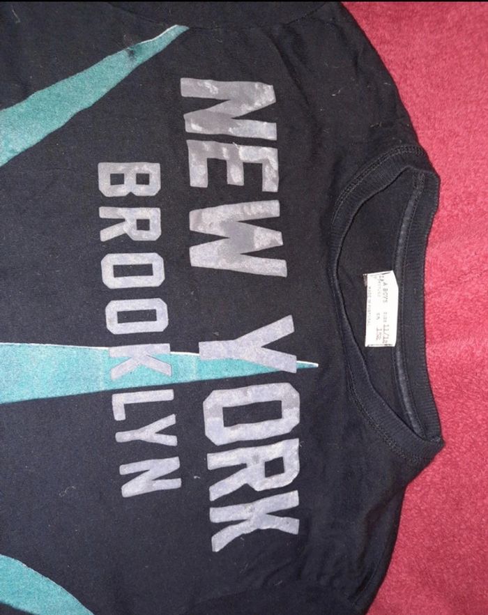 Pull noir zara boys taille 11/12 ans ⚠️ Le velours des écritures est presque partie et un défaut de couleur voir les photos #vetementgarçonjennycdu76 #zara