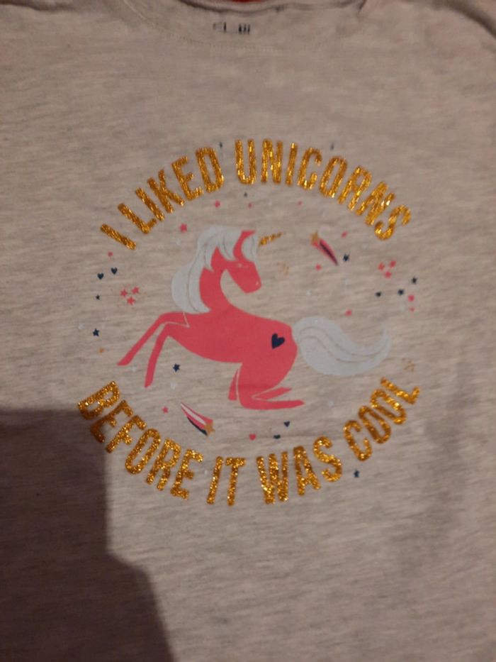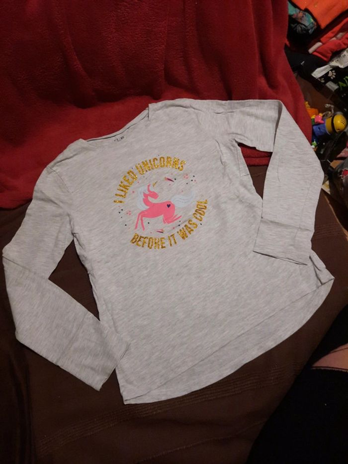 Haut ml gris licorne kiabi 10 ans 1 trait mais c'est un défaut dans le Haut #vetementfille10ansjennycdu76 #kiabi #licorne