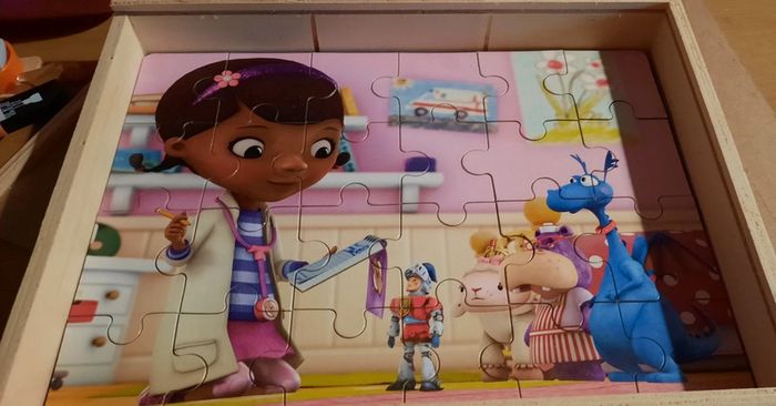 Puzzle docteur la peluche fait 1 fois dans sa boîte en bois. Puzzle bien épais Complet #jeujennycdu76 #puzzle #docteurlapeluche #disney