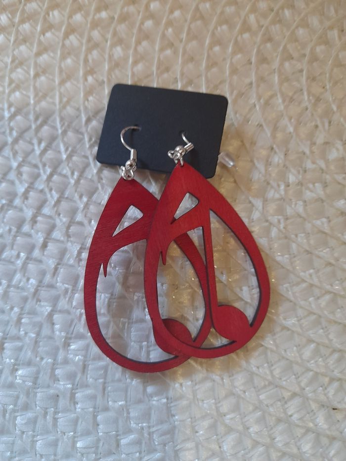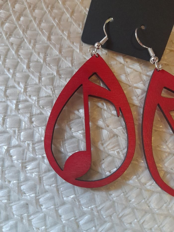 Paire de boucle d oreille artisanal en bois note de musique. Peinture acrylique