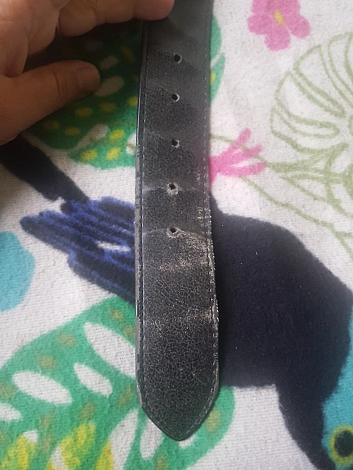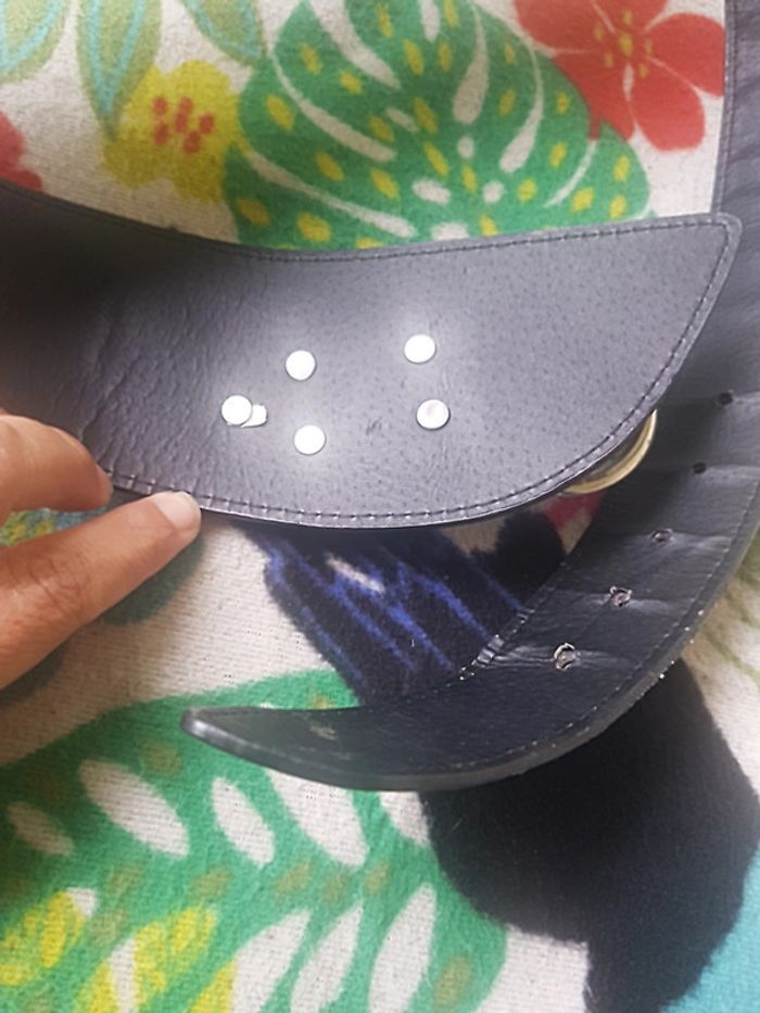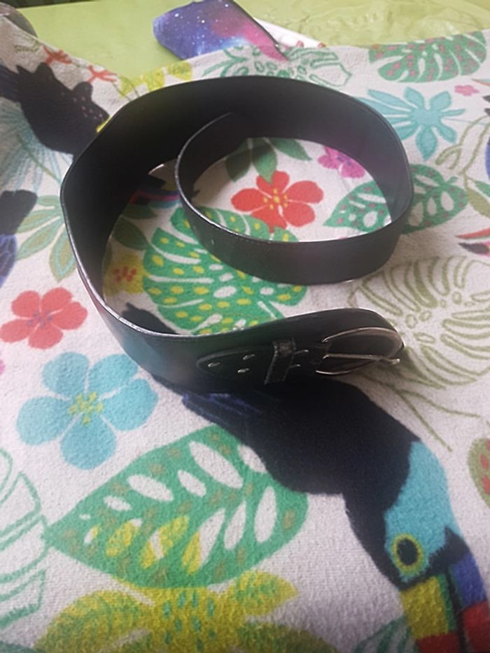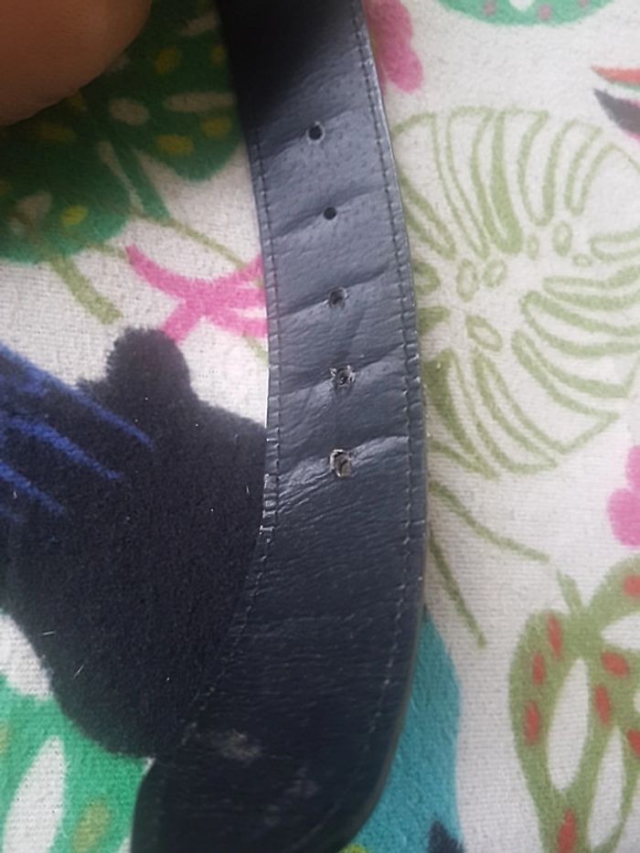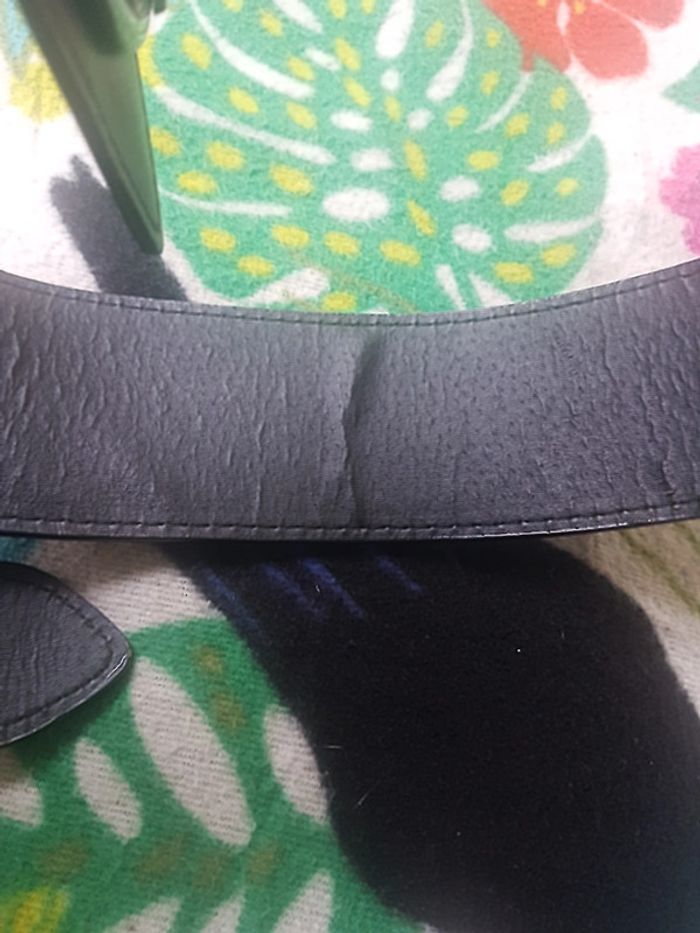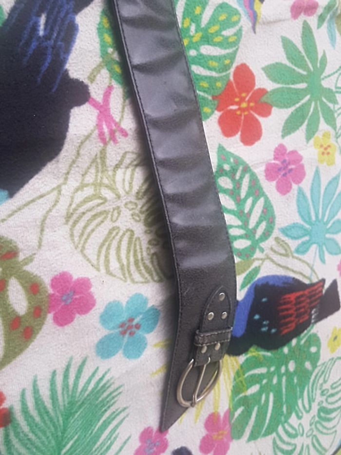 Ceinture noir style craquellé sans taille mais c'est la meme taille que l'autre ceinture donc 42. Un peu abîmé au niveau des trous bien regarder les photos svp #vetementfemmejennycdu76