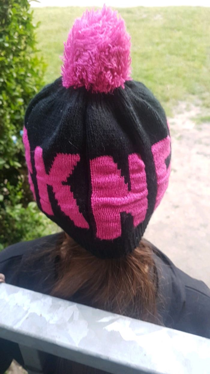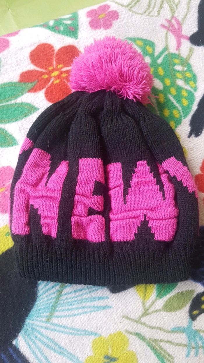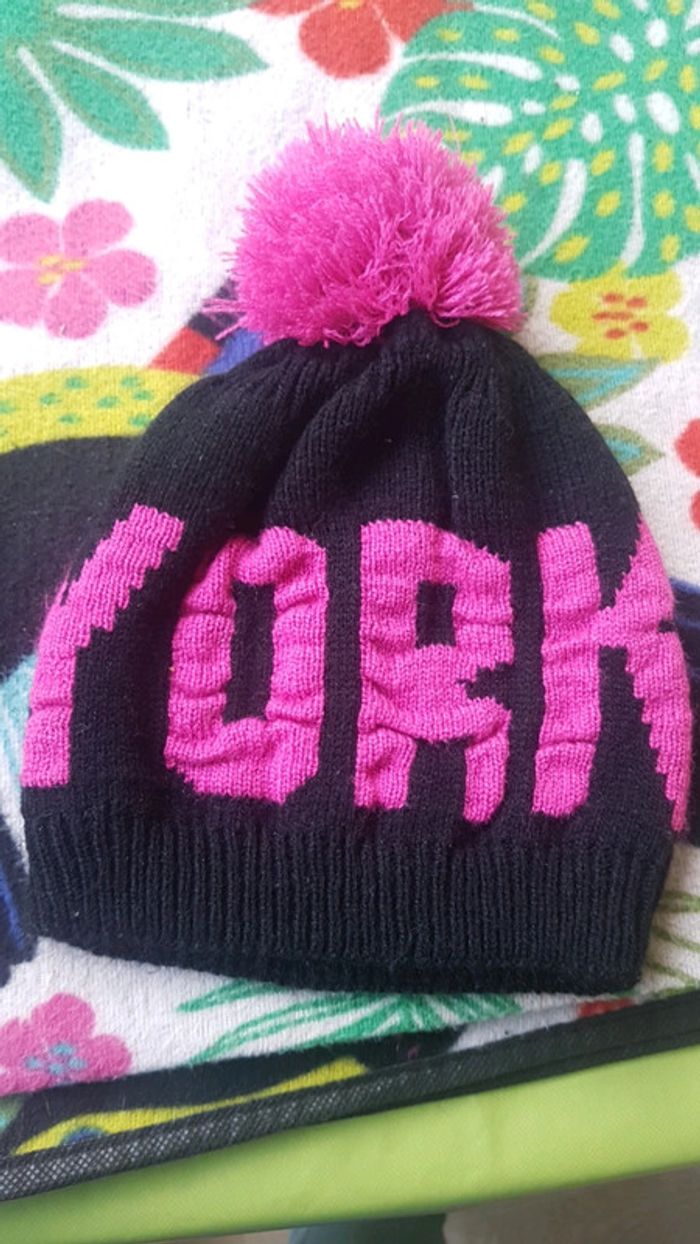 Bonnet noir et violet de chez gémo. Va a ma fille de 6 ans mais elle n'aime pas les bonnets #vetementfille6ansjennycdu76