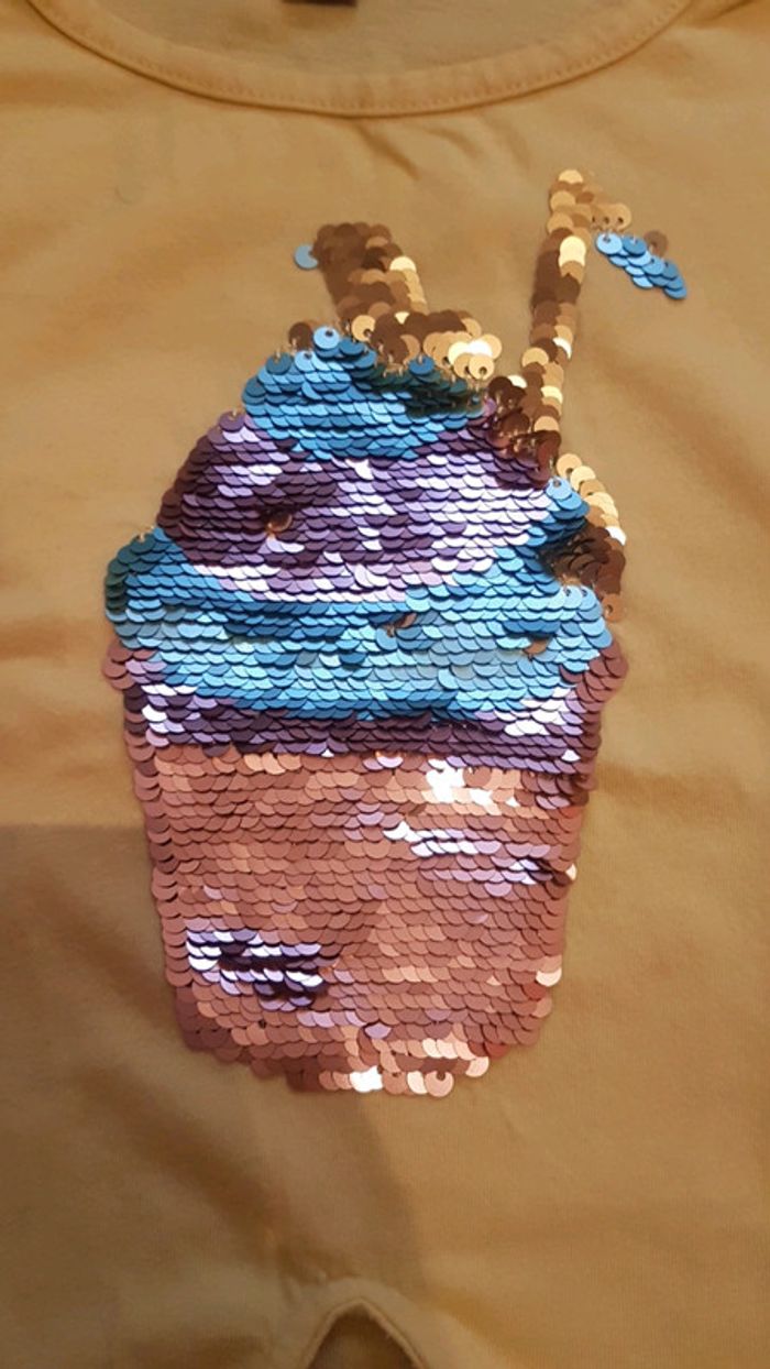 T-shirt jaune a sequins magique kiabi 4 ans #vetementfille4ansjennycdu76