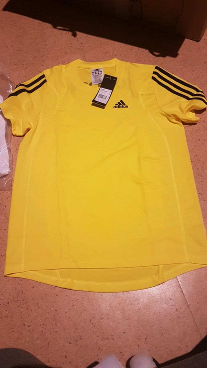 T shirt neuve adidas jaune de taille xs. Juste déballé pour la photo. #vetementhommejennycdu76