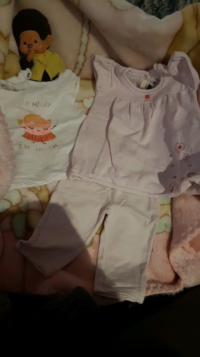 Vend lot 3 pieces une robe gémo, un leeging dpam, un t-shirt kiabi. Le tout en 3 mois ⚠kiki pas a vendre⚠ #vetementbebefillejennycdu76