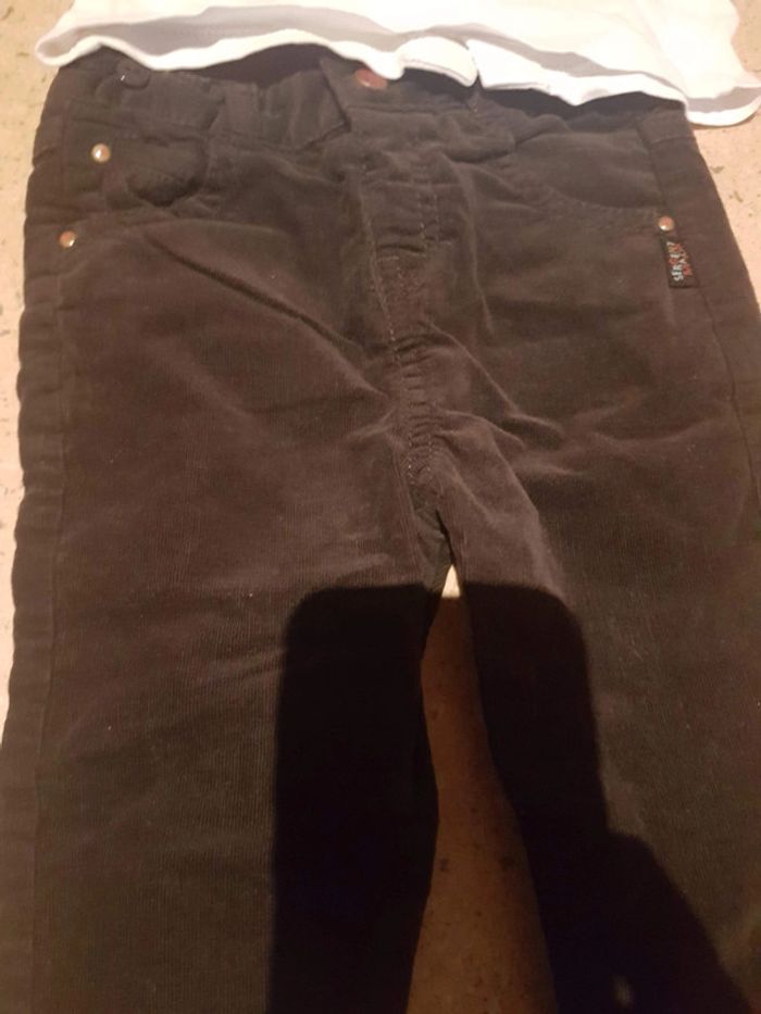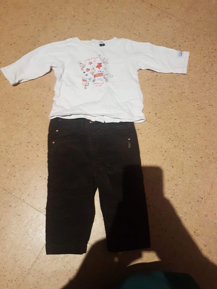 Ensemble sergent major pantalon velour marron haut blanc 6 mois #vetementbebefillejennycdu76