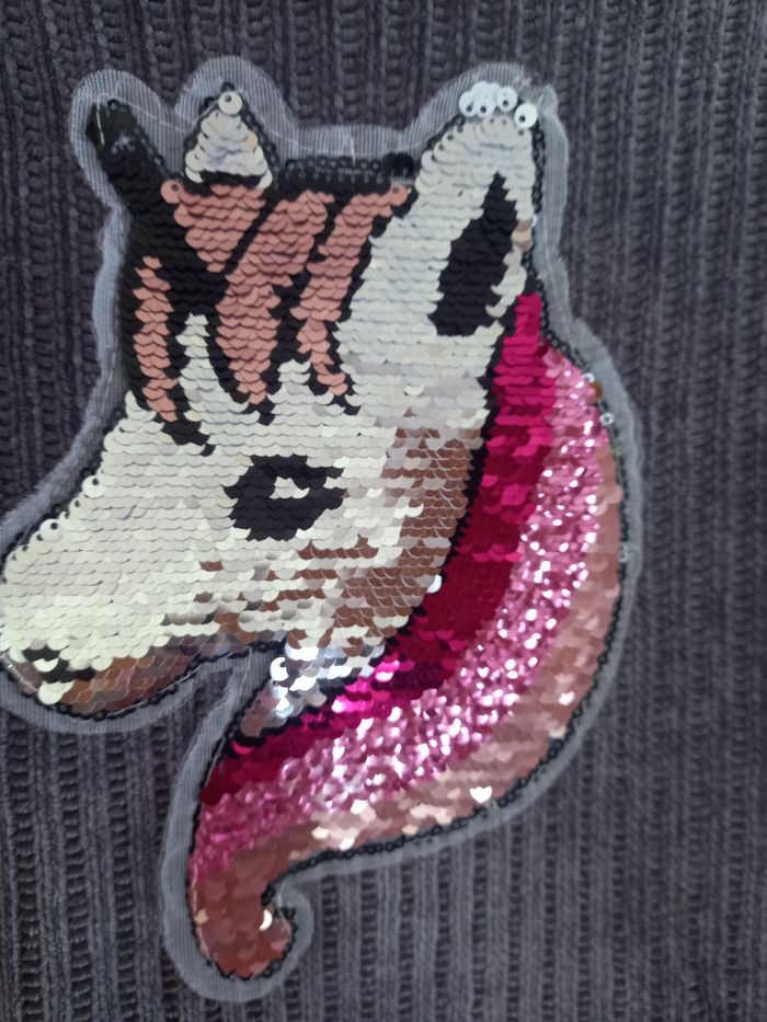 Pull à capuche avec motif à sequins. Taille 10 ans.