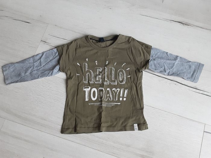 Vêtement garçon tee-shirt manches longues vert et gris Kiabi 2 ans