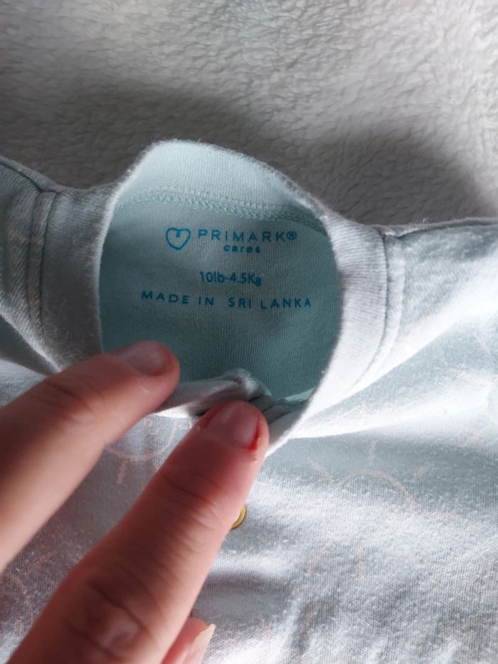 Lot 3 pyjamas légers 1 mois 1 turquoise Primark 1 gris kiabi 1 turquoise kiabi