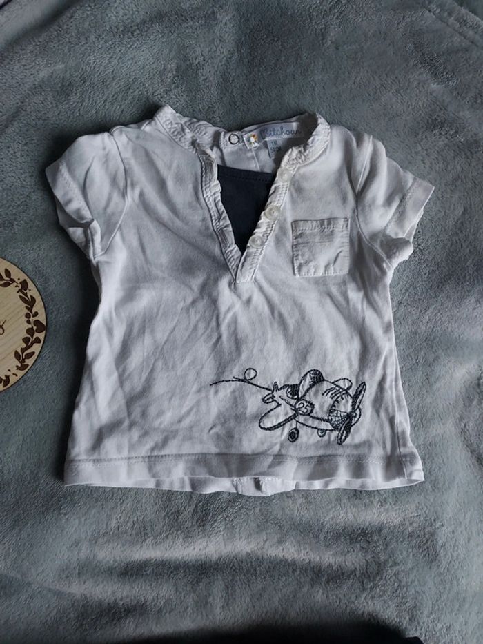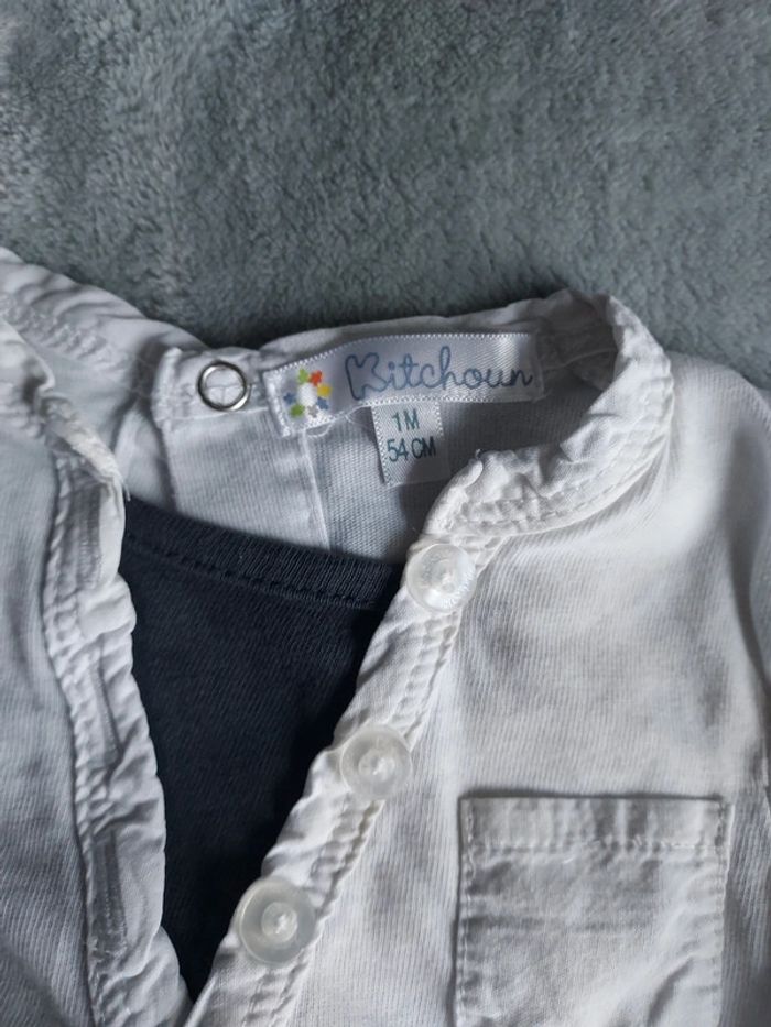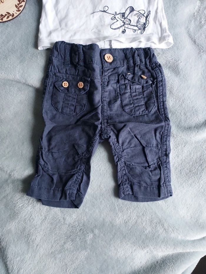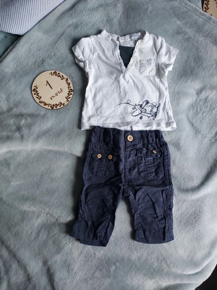 Ensemble ete bébé garçon 1mois 1 pantalon léger marine 1 t shirt blanc Manches courtes