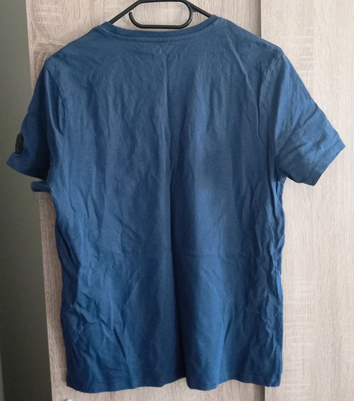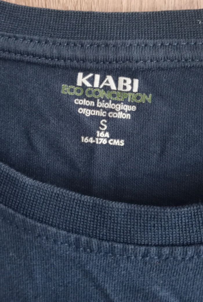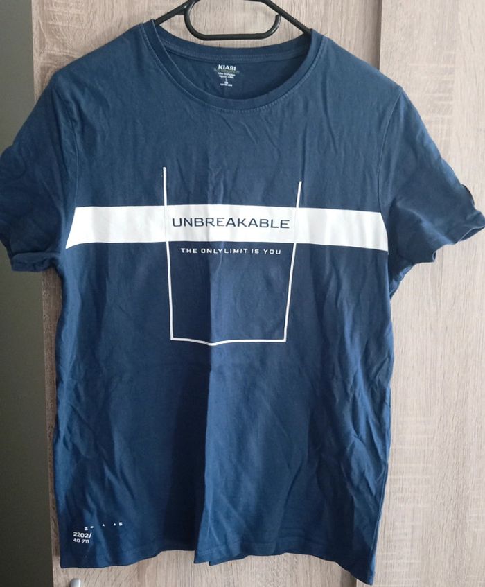 T-shirt, taille 164-176, la barre du haut c'est décollé (photo jointe) mais en dehors de cela il reste quand même en très bon état #sport #tshirt #kiabi #ado #bleu #blue