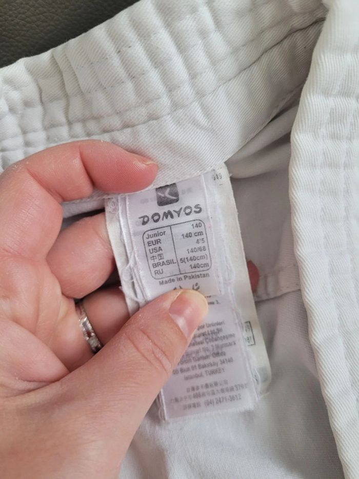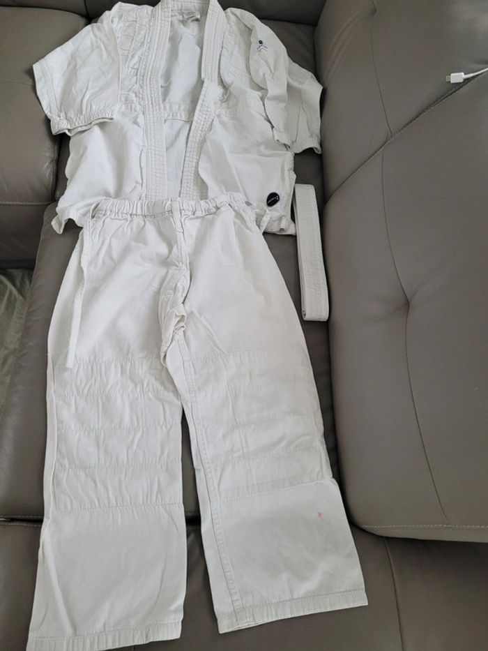 Vends ensemble judo enfant 8 - 10 ans acheté chez Decathlon marque Domyos en très bon état. N hesitez pas à regarder mon profil d autres articles enfant et possibilité de lot.