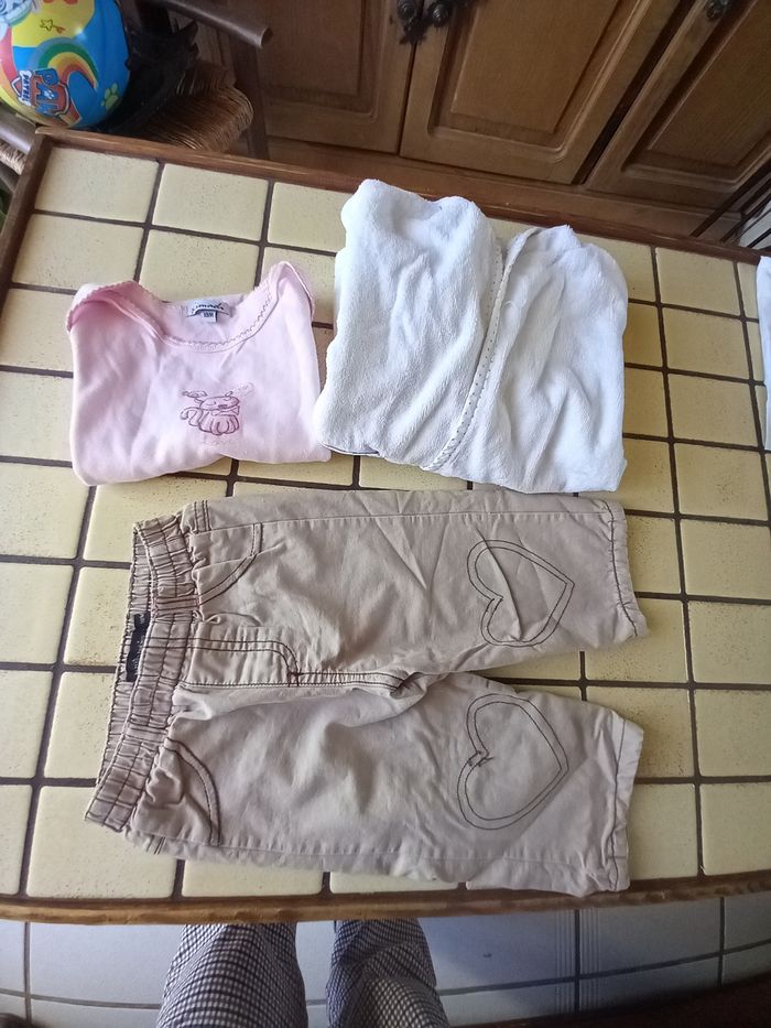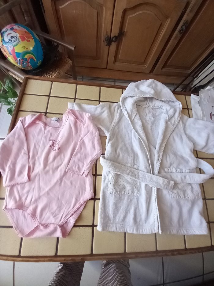 Vend lot de vêtements en parfait état Composer de 1 bodies, 1 pantalon et 1 peignoir de bain Taille 18 mois Différentes couleurs Marque bout'chou, kimadi