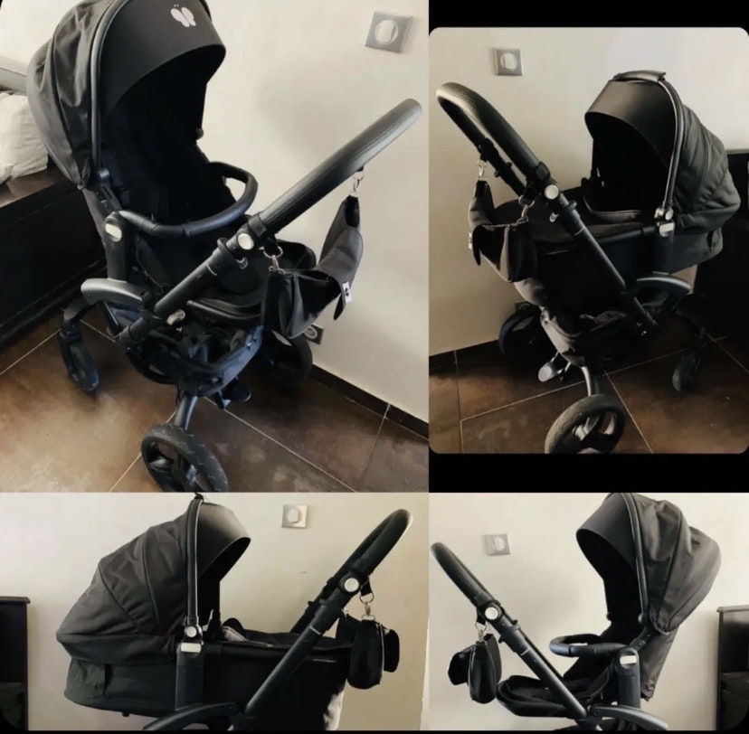 Vends ma poussette en très bon état (acheté l’été 2019 facture d’achat à l’appui, je dois la vendre car je vais bientôt accouché de mon deuxième bébé et il me faut une poussette double pour bébés rapprochés) prix sur le site 799 €, vendu : 400€ poussette bonavi tout terrain édition limitée All Black utilisable dès naissance à ses 4 ans, encore sous garantie pour environ 2 ans, nacelle et assise réversible, accessoire : pare-soleil, moustiquaire, habillage pluie, organiseur pour poussette all black En option : sac à langer all black (acheté 99,90€ facture d’achat à l’appui) vendu 50€ Lien du site vendant la poussette d’origine allemande : https://bonavi.fr/produit/poussette/?attribute_pa_farbe=all-black Lien de présentation de la poussette : https://youtu.be/4eG3XeA4jus