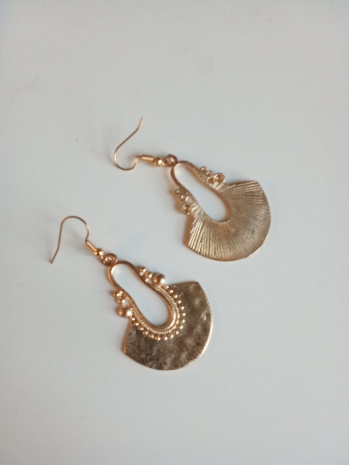 Couleur doré , pendante. Sur la photo : les boucles vu de face et vu de derrière. Beaucoup d'autres paires disponibles ds mon dressing et réduction activée.