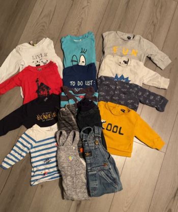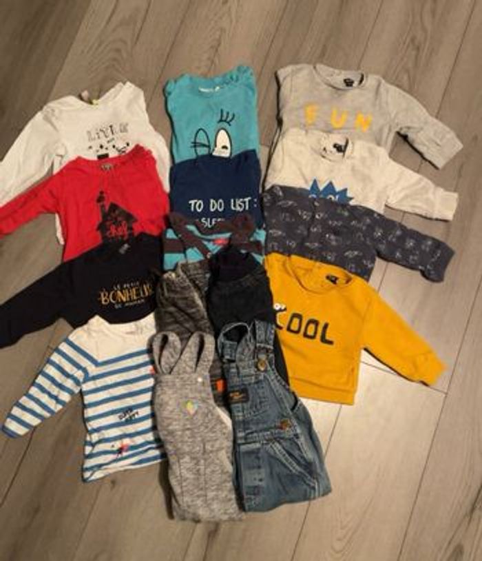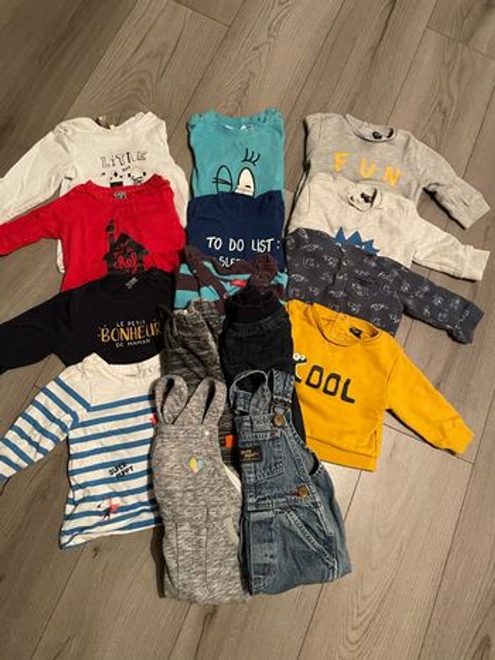 Lot 12 mois 7 t-shirts Manches longues 4 pulls 2 salopettes 2 pantalons Toutes marques :)