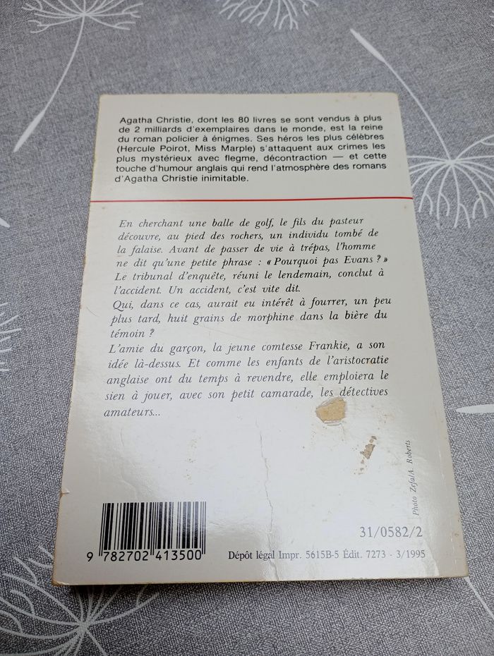 Livres d'Agatha Christie. Pourquoi pas Evans ? Le chat et les pigeons. Voir état sur photos.