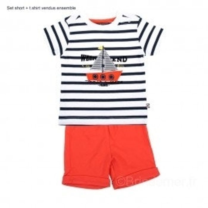 Marque Week end a la mer Neuf avec étiquette Haut marinière/ short orange Disponible en 6 mois/12mois/18mois Disponible aussi en couleur bleu marine