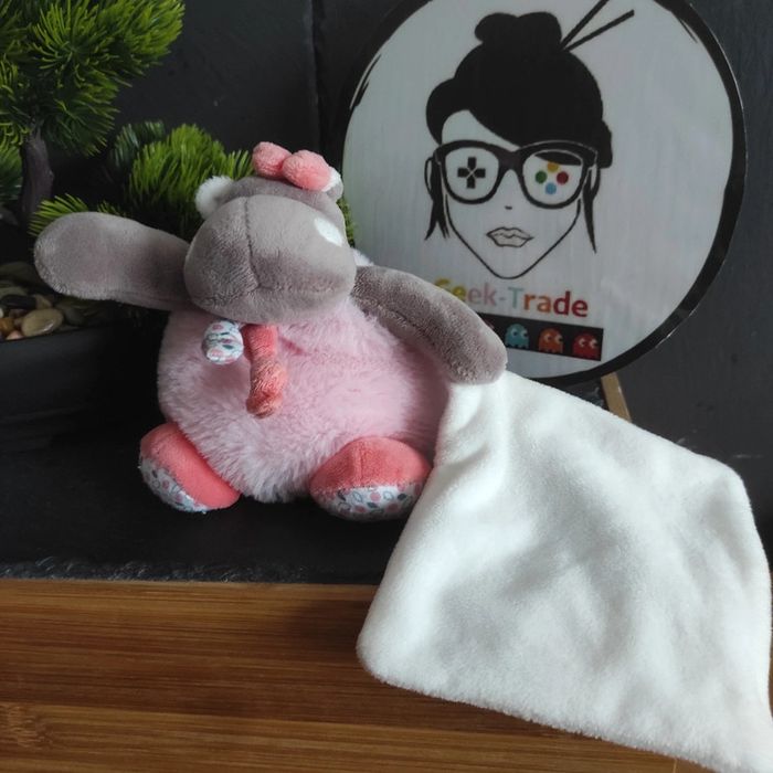 Doudou Baby Nat Hippopotame Mouchoir Zoe Feuille Rose Pantin Blanc BN0555 - photo numéro 1