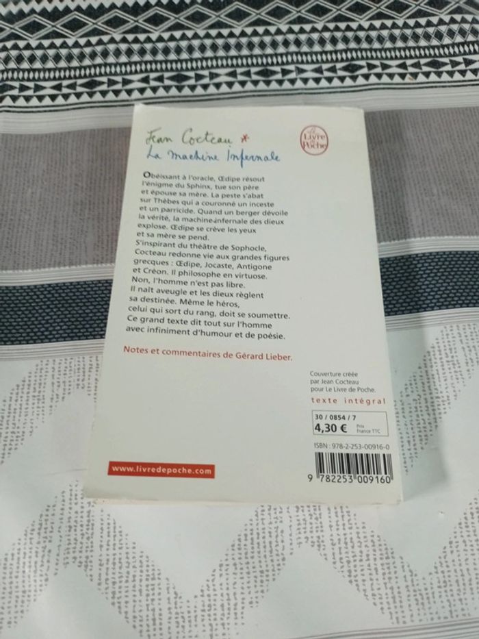 Livre de poche Jean cocteau en très bonne état quel page écrite sur le côté