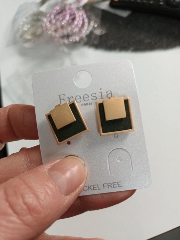 Boucle clous doré vert - photo numéro 3