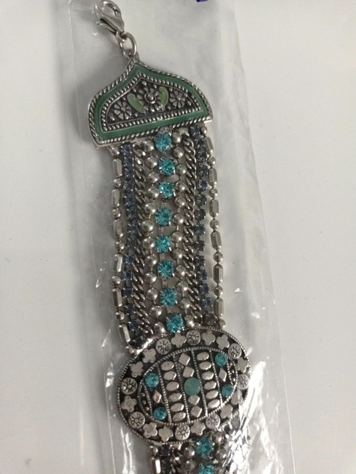 Bracelet fantaisie argenté .bleu et vert - photo numéro 2