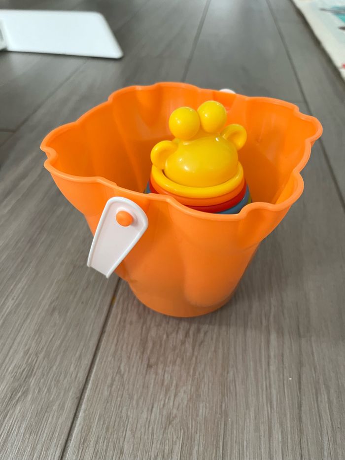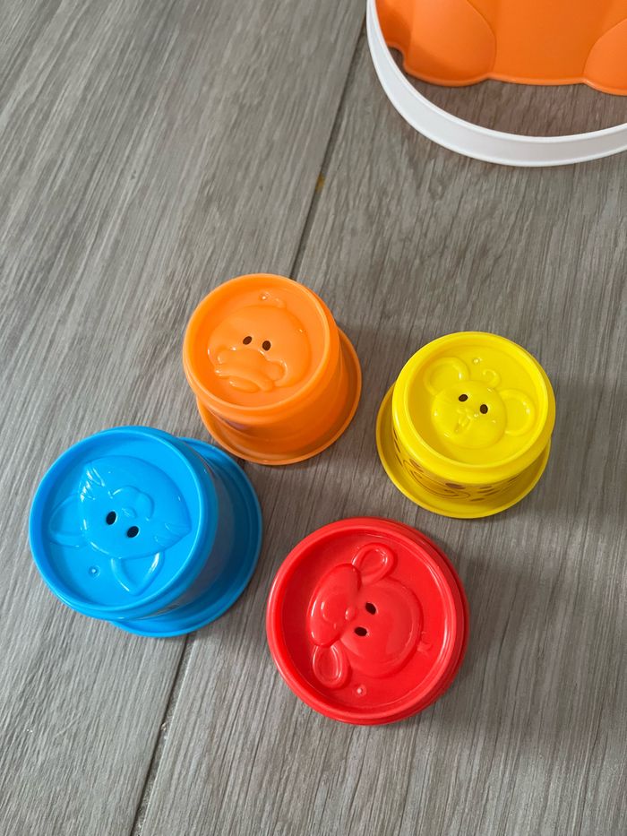 Cubes texturés pour former une pyramide. Activités sensorielles que de textures à expérimenter pour familiariser bébé aux formes, couleurs et même à compter. Très bon état