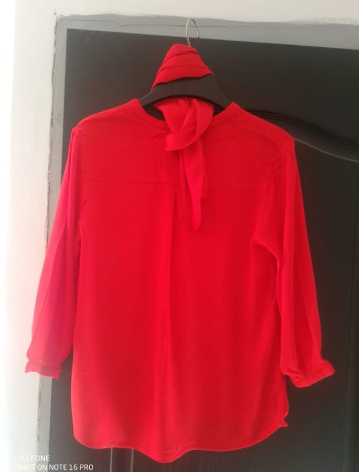 Joli chemisier rouge manches 3/4 avec petit foulard. Comme neuf, jamais porté #lilia2988_taille34