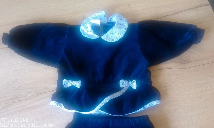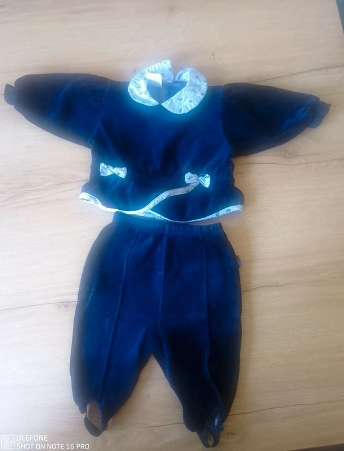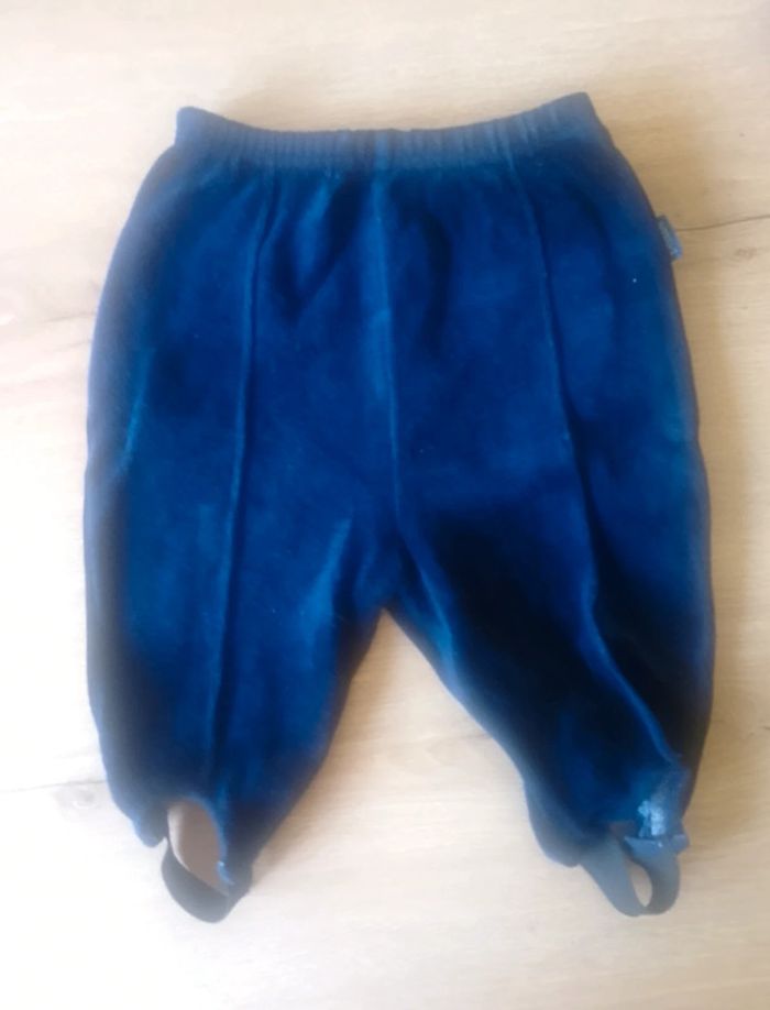 Jolie ensemble en velours bleu avec pantalon et pull. Pantalon avec pied élastique Très bon état