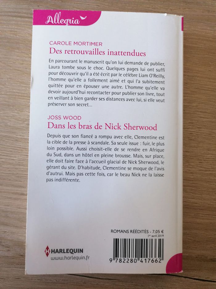 Livre composé de deux histoires : - Des retrouvailles inattendues de Carole Mortier - Dans les bras de Nick Sherwood de Joss Wood Très bon état #lilia2988_livres1euro