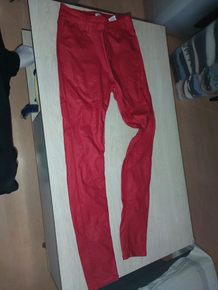 Jeans simili patiné rouge 34 xs 14 ans