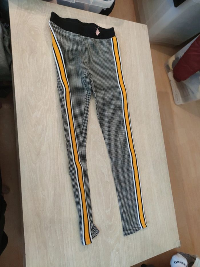 Jegging pied de poule noir blanc bande jaune blanche h&m 12 ans