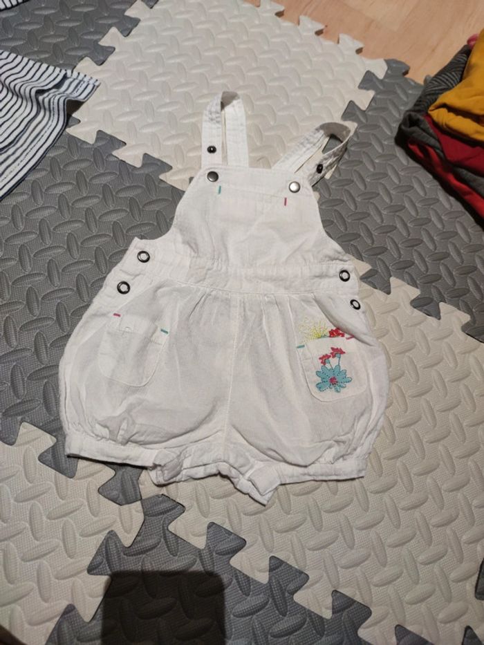Salopette boule short blanche broderie fleur orchestra 6 mois