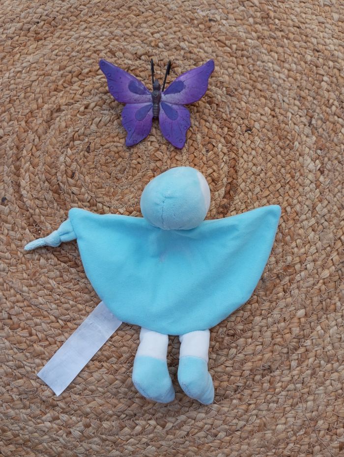 Tom & kiddy Doudou oiseau pingouin Bleu blanc Broderies arc-en-ciel #douceur_doudou C11