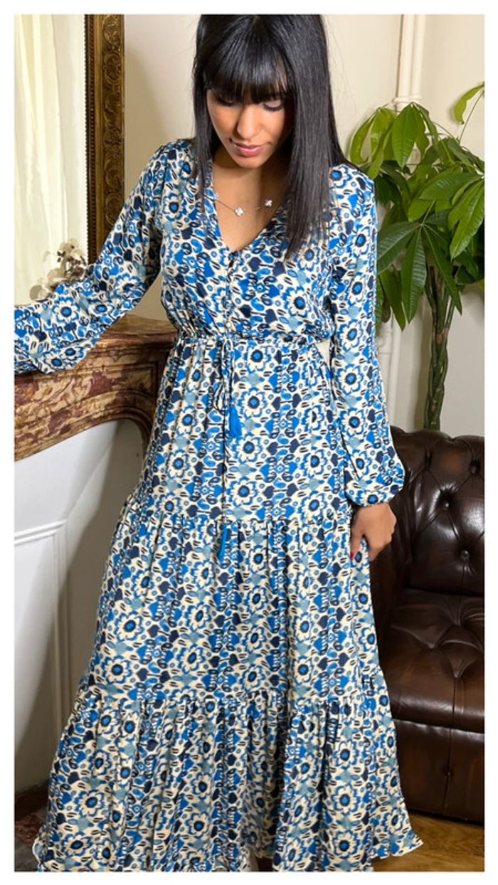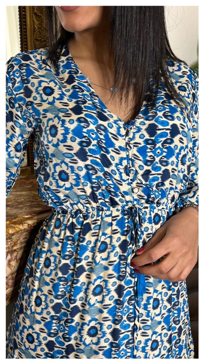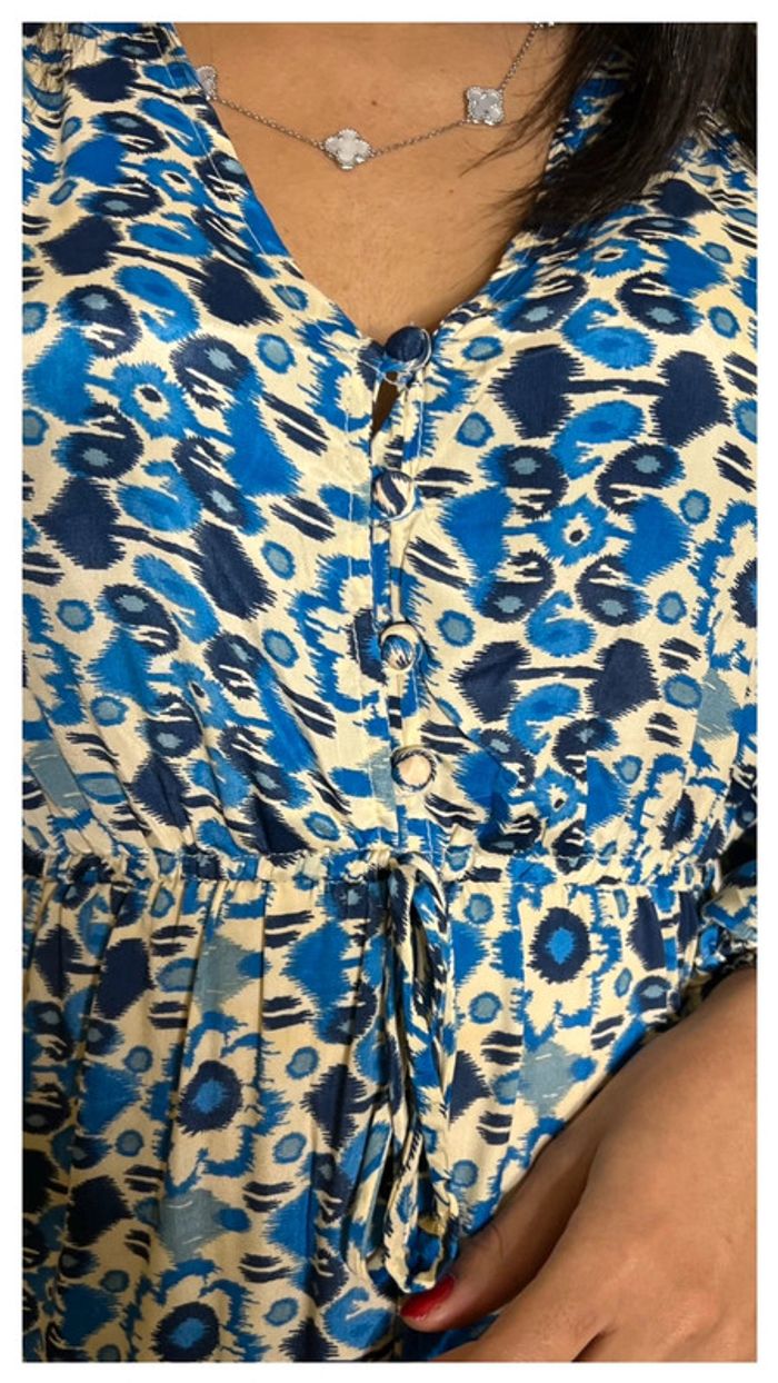 Fabrication indienne Désigned en France Composition 100.% viscose Taille 36-38 Taille élastique Manches longues Boutonnée jusqu’à la taille Très agréable à porter ♥️